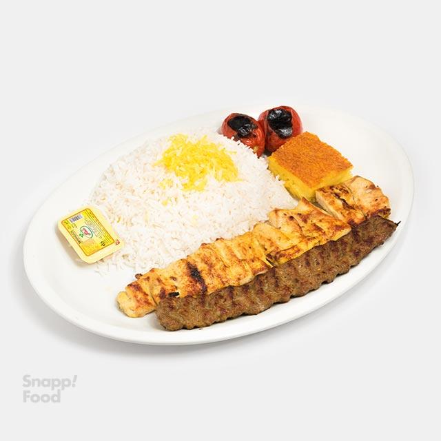چلو کباب 220 گرمی مخصوص با دورچین(برنج خارجی)